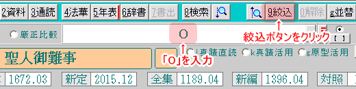 「0」を入力して ボタンをクリックすると、現在表示の御書が絞り込まれる |