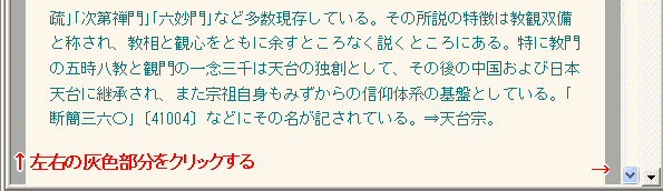 - 辞書フォーム画面で[語義解説]が長文の場合、右側のスクロールバーを下げて読んでいきます。すると[語義解説]部分だけでなくボタン列を含んだフォーム画面の全体が上に上がってしまいます。それを元の画面位置に戻すとき、多分いまは、下に下がったスクロールバーを上に移動して戻されていることと思います。そんなときこれからは、画面灰色の空白部分をクリックしてください。それで直ちに元の画面位置に戻ります。